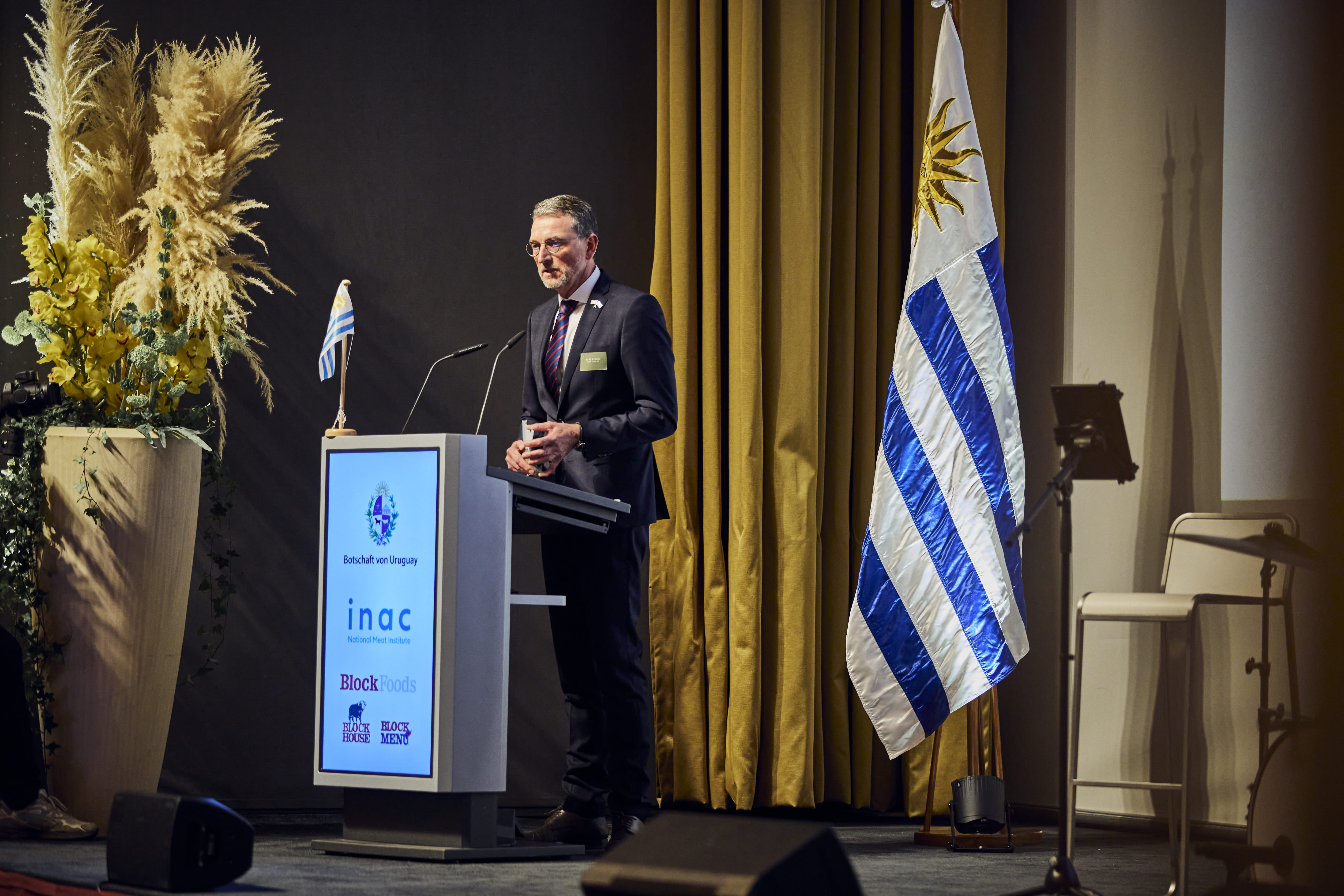 Unter dem Motto „Aus Weide wird Genuss“ gab der Uruguay-Abend 2026 Einblicke in die Zukunft der Weidebewirtschaftung. In Anwesenheit von S.E. Fernando Miguel López Fabregat, Botschafter von Uruguay in Deutschland, seiner Frau Maria Carolina Silveiro Olmo sowie der Generalkonsulin Lilian Silveira, erläuterte Karl-Heinz Krämer die aktuellen Entwicklungen im internationalen Rindfleischmarkt und die Herausforderungen durch die stark abnehmenden Rinderbestände in Europa und den USA.